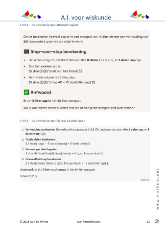 A.I. voor wiskunde 4.3.5.3 De uitwerking door Microsoft Copilot 4.3.5.4 De uitwerking door Chinese Chatbot Qwen t e n . o l e h t a m . w w w © 2025 Ivan De Winne ivan@mathelo.net 21