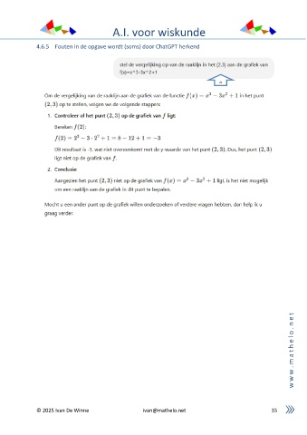 A.I. voor wiskunde 4.6.5 Fouten in de opgave wordt (soms) door ChatGPT herkend 0 t e n . o l e h t a m . w w w © 2025 Ivan De Winne ivan@mathelo.net 35