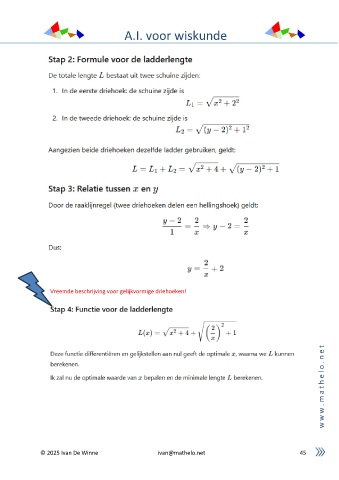 A.I. voor wiskunde Vreemde beschrijving voor gelijkvormige driehoeken! t e n . o l e h t a m . w w w © 2025 Ivan De Winne ivan@mathelo.net 45