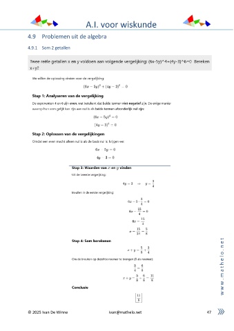 A.I. voor wiskunde 4.9 Problemen uit de algebra 4.9.1 Som 2 getallen t e n . o l e h t a m . w w w © 2025 Ivan De Winne ivan@mathelo.net 47