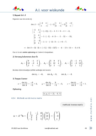 A.I. voor wiskunde 4.9.4 Methode van de inverse matrix t e n . o l e h t a m . w w w © 2025 Ivan De Winne ivan@mathelo.net 49
