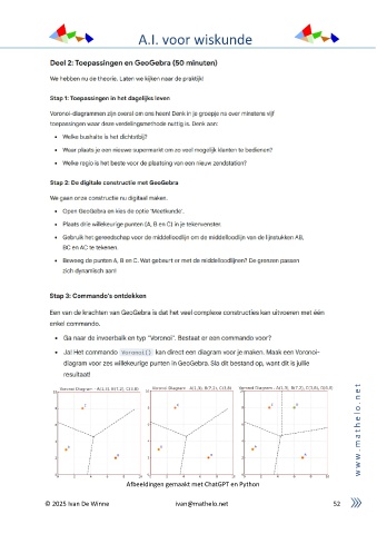 A.I. voor wiskunde t e n . o l e h t a m . w w w Afbeeldingen gemaakt met ChatGPT en Python © 2025 Ivan De Winne ivan@mathelo.net 52