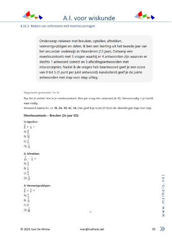 A.I. voor wiskunde 4.11.5 Maken van oefentoets met meerkeuzevragen t e n . o l e h t a m . w w w © 2025 Ivan De Winne ivan@mathelo.net 59