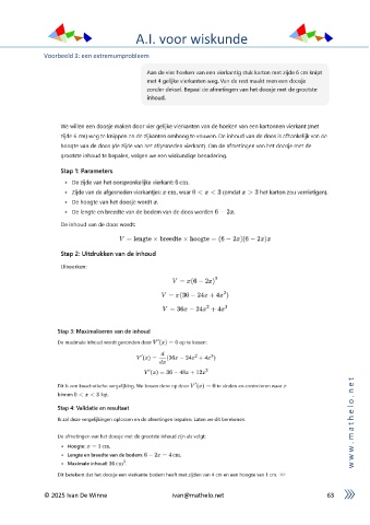 A.I. voor wiskunde Voorbeeld 3: een extremumprobleem t e n . o l e h t a m . w w w © 2025 Ivan De Winne ivan@mathelo.net 63