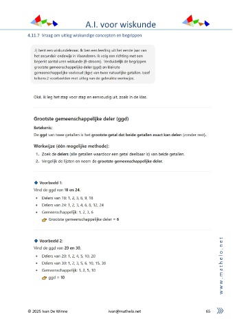 A.I. voor wiskunde 4.11.7 Vraag om uitleg wiskundige concepten en begrippen t e n . o l e h t a m . w w w © 2025 Ivan De Winne ivan@mathelo.net 65