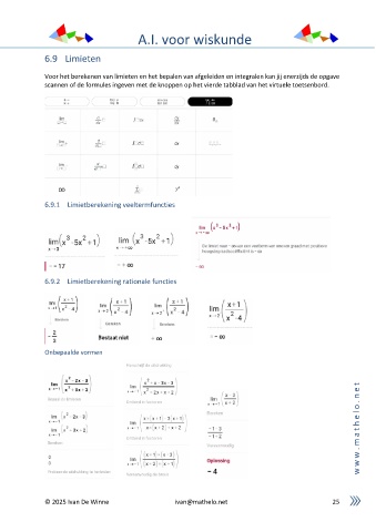 Voor het berekenen van limieten en het bepalen van afgeleiden en integralen kan jij enerzijds de opgave