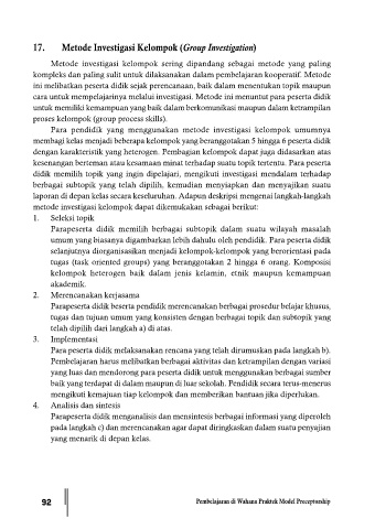 cara untuk mempelajarinya melalui investigasi. Metode ini menuntut para peserta didik