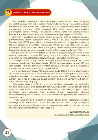 dideteksi dan diobati. “Kenaikan insiden TBC di Indonesia pada tahun 2020 dan