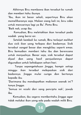 Akhirnya Biru membawa ikan tersebut ke rumah