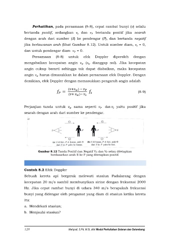 jika berlawanan arah (lihat Gambar 8.12). Untuk sumber diam, = 0,