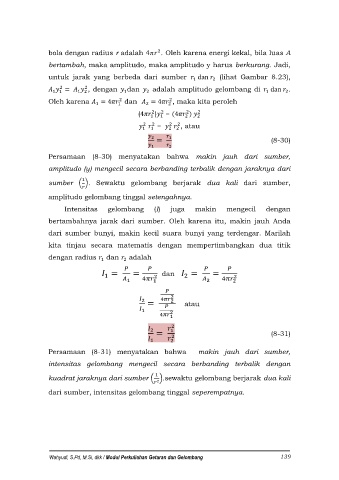 Persamaan (8-31) menyatakan bahwa makin jauh dari sumber,
