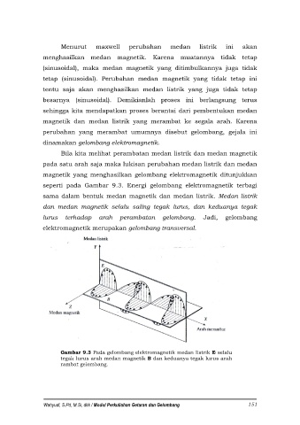 Gambar 9.3 Pada gelombang elektromagnetik medan listrik E selalu