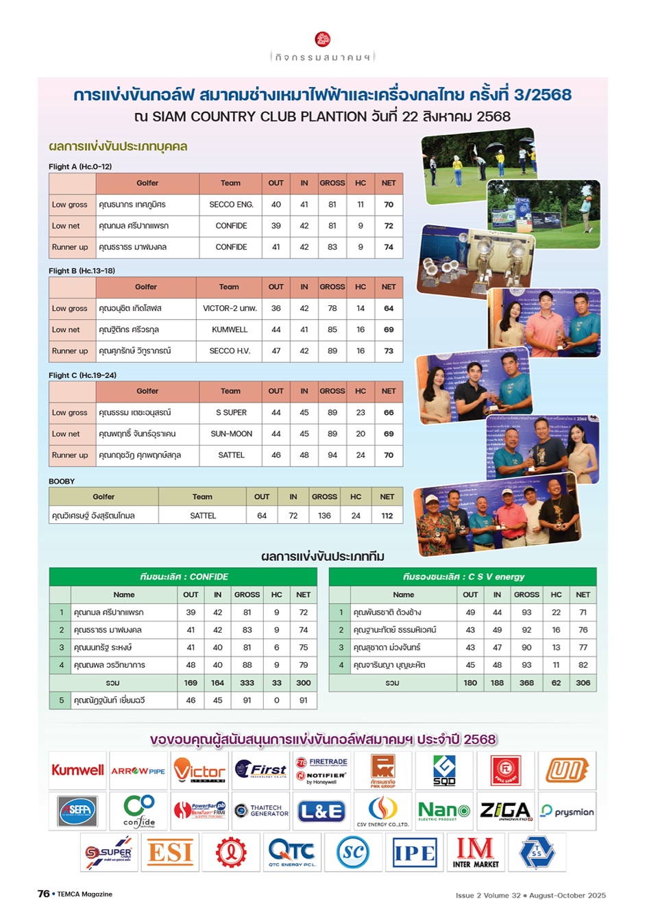 ขอขอบคุณผู้สนับสนุนการแข่งขันกอล์ฟสมาคมฯ ประจำปี 2568