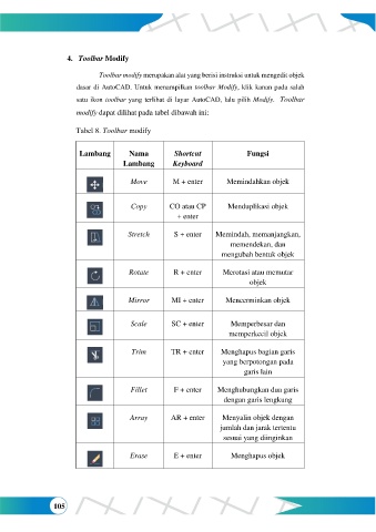 Toolbar modify merupakan alat yang berisi instruksi untuk mengedit objek