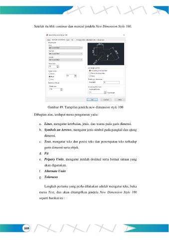 Setelah itu klik continue dan muncul jendela New Dimension Style 100.
