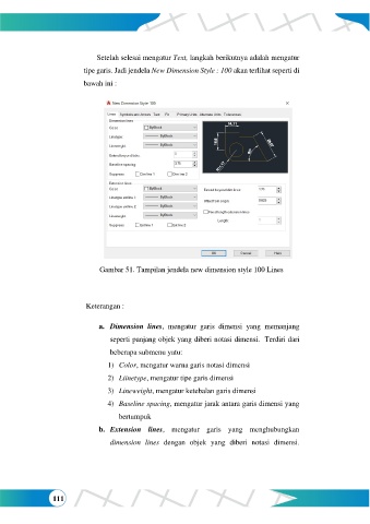 a. Dimension lines, mengatur garis dimensi yang memanjang
