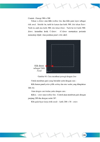 Klik L – enter atau toolbar line. Contoh akan membuat garis dengan