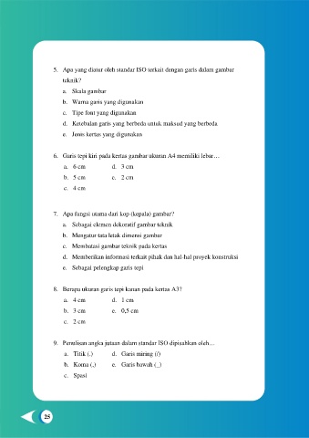 6. Garis tepi kiri pada kertas gambar ukuran A4 memiliki lebar…