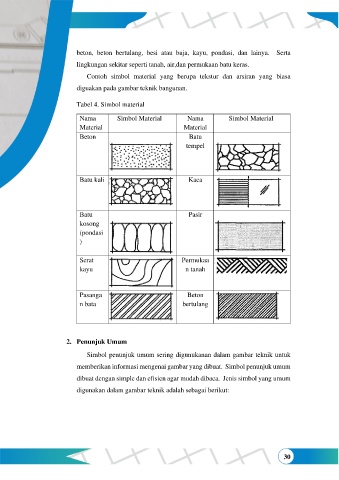 Contoh simbol material yang berupa tekstur dan arsiran yang biasa