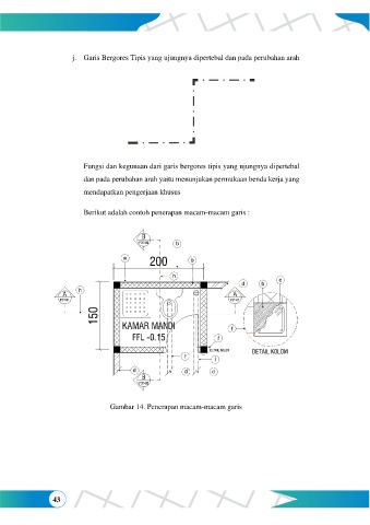 j. Garis Bergores Tipis yang ujungnya dipertebal dan pada perubahan arah