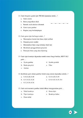 15. Garis arsir menurut gambar teknik dibuat menggunakan garis…
