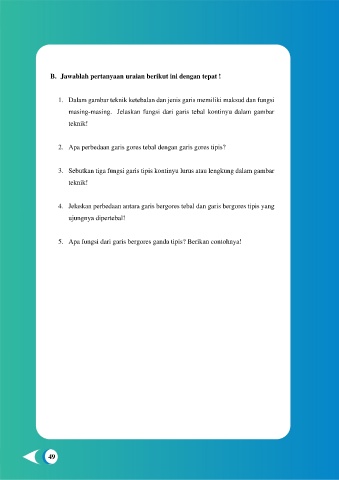 3. Sebutkan tiga fungsi garis tipis kontinyu lurus atau lengkung dalam gambar