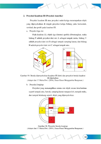Gambar 19. Benda diproyeksikan kuadran III (kiri) dan proyeksi benda kuadran