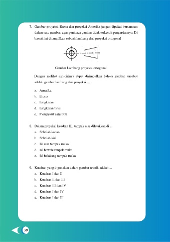 8. Dalam proyeksi kuadran III, tampak atas diletakkan di ...