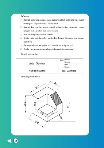 4) Selain garis tepi dan etiket gambarlah ilustrasi bendanya saja dengan