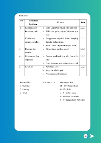 1. Kerapihan dan a. Garis Digambar dengan jelas dan rapi. 1, 2, 3