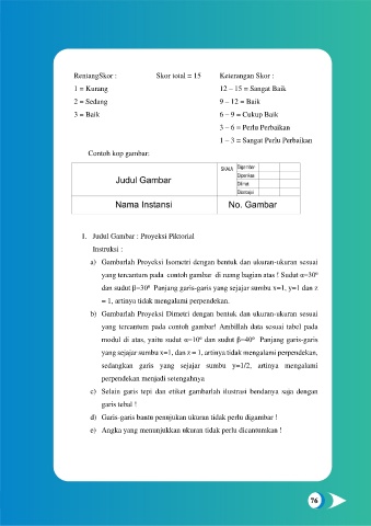 b) Gambarlah Proyeksi Dimetri dengan bentuk dan ukuran-ukuran sesuai