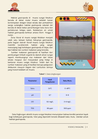bagi kehidupan gastropoda. Nilai yang diperoleh berada dibawah baku mutu standar untuk