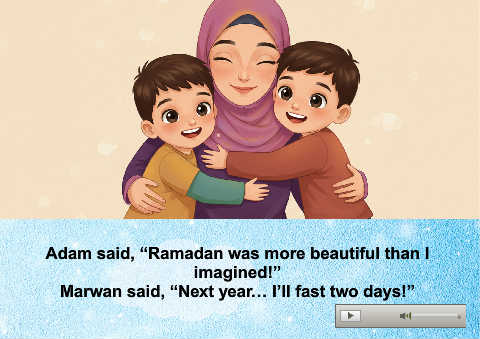 Adam said, “Ramadan was more beautiful than I imagined!” Marwan said, “Next year… I’ll fast two days!”