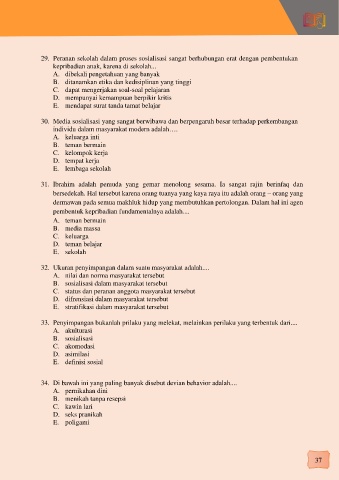 29. Peranan sekolah dalam proses sosialisasi sangat berhubungan erat dengan pembentukan