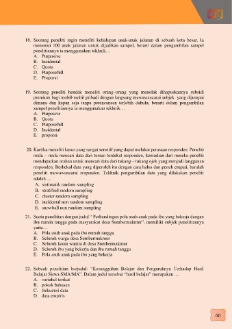 18. Seorang peneliti ingin meneliti kehidupan anak-anak jalanan di sebuah kota besar. Ia
