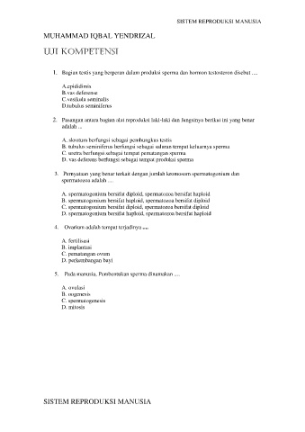 1. Bagian testis yang berperan dalam produksi sperma dan hormon testosteron disebut ....