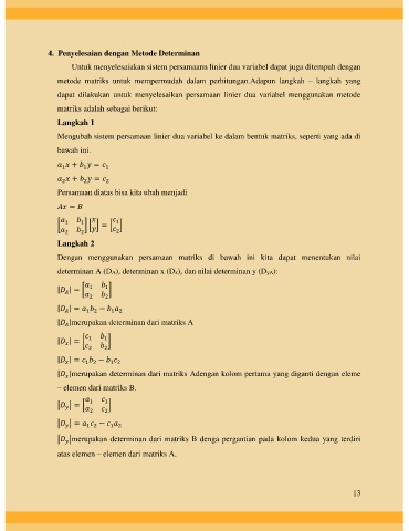 | |merupakan determinan dari matriks B denga pergantian pada kolom kedua yang terdiri