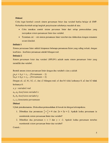 Temukan ciri – ciri sistem persamaan linier tersebut dan diskusikan dengan temanmu