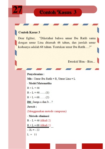 keduanya adalah 68 tahun. Tentukan umur Ibu Ratih….?"