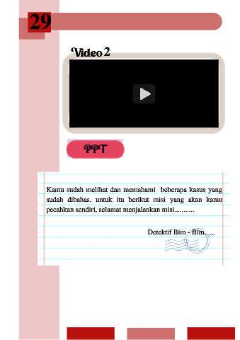 29 Video 2 PPT Kamu sudah melihat dan memahami beberapa kasus yang sudah dibahas. untuk itu berikut misi yang akan kamu pecahkan sendiri, selamat menjalankan misi........... Detektif Bim - Bim......