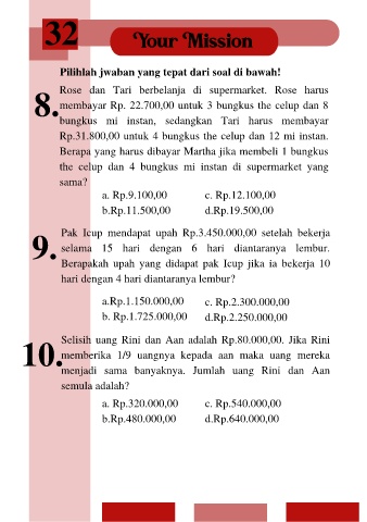 8. Rose dan Tari berbelanja di supermarket. Rose harus