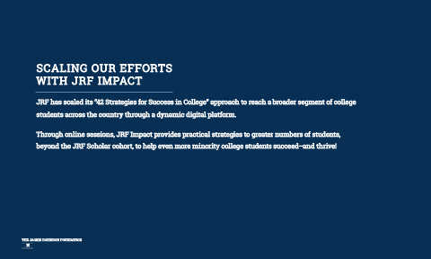 beyond the JRF Scholar cohort, to help even more minority college students succeed–and thrive!
