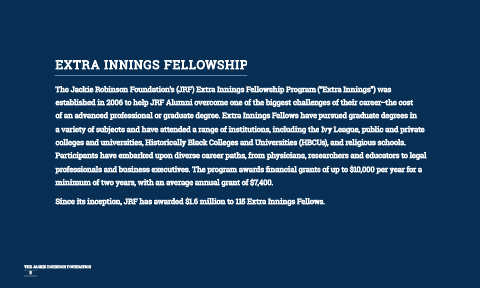 The Jackie Robinson Foundation’s (JRF) Extra Innings Fellowship Program (“Extra Innings”) was
