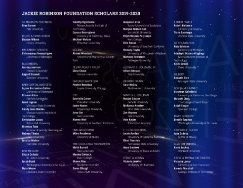 JACKIE ROBINSON FOUNDATION SCHOLARS 2019-2020