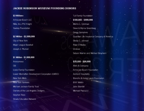 JACKIE ROBINSON MUSEUM FOUNDING DONORS
