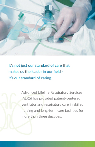 it’s our standard of caring Advanced Lifeline Respiratory Services (ALRS) has provided patient-centered ventilator and respiratory care in skilled nursing and long-term care facilities for more than three decades