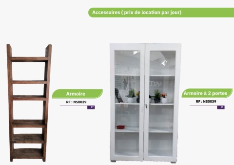 Accessoires ( prix de location par jour) Armoire Armoire à 2 portes RF : NS0039 RF : NS0039 T D T 20 DT 20 DT D