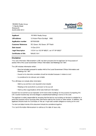 This Land Information Memorandum (LIM) has been prepared for the applicant for the purpose of