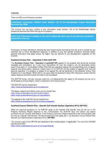 provisions for the Hauraki Gulf Islands. If the Property Summary Report attached to this memorandum lists