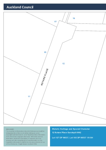 Copyright Auckland Council. Land Parcel Boundary information Scale @ A4